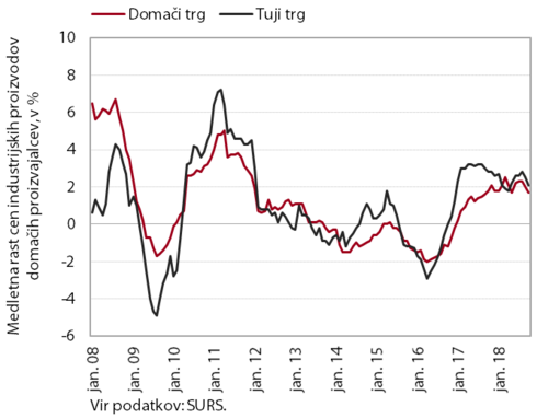 Medletna rast cen industrijskih proizvodov slovenskih proizvajalcev se je oktobra znižala na domačem in tujih trgih.